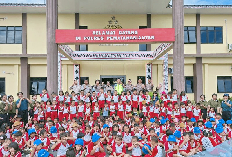 *PEMATANGSIANTAR* – VeranNews.com – Satuan Lalu Lintas Polres Pematangsiantar menerima kunjungan edukatif dari 180 siswa Taman Kanak-Kanak (TK) Cinta Rakyat di Markas Komando Polres Pematangsiantar, Jalan Sudirman, Kecamatan Siantar Barat, Jumat (20/2) sekitar pukul 09.00 WIB.