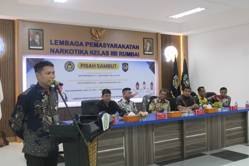 Pekanbaru – verannews.com..Lembaga Pemasyarakatan (Lapas) Narkotika Kelas IIB Rumbai menggelar acara Pelepasan Pejabat Lama dan Perkenalan Pejabat Baru, yakni Kepala Subbagian Tata Usaha, Kepala Kesatuan Pengamanan Lapas, Kepala Seksi