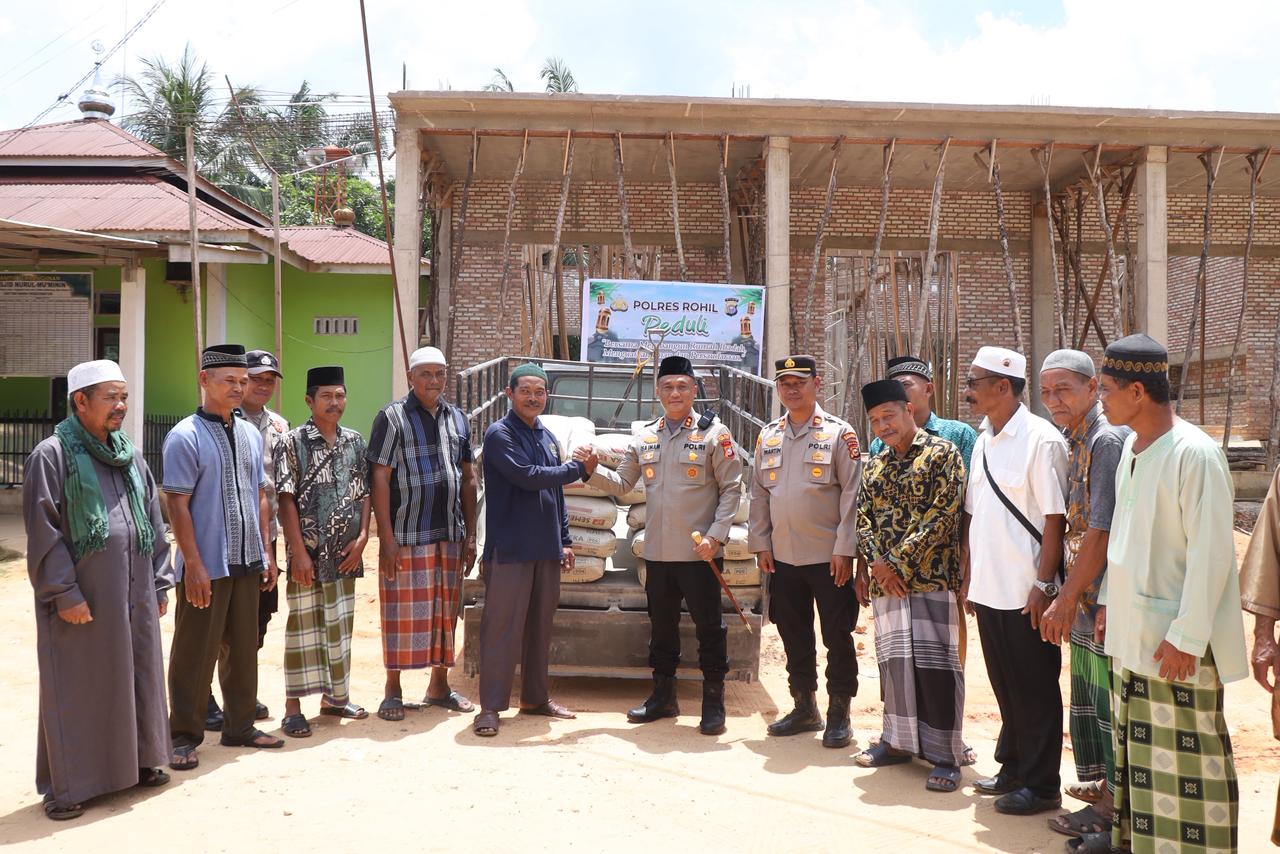 Pada Rabu (25/02/2026) siang, Kapolres Rokan Hilir, AKBP Isa Imam Syahroni, S.I.K., M.H., secara langsung menyambangi Masjid Nurul Mu’minin yang berlokasi di Jalan Datuk Imam Kamso, Kepenghuluan Lenggadai Hulu. Kedatangan beliau bukan sekadar kunjungan kerja, melainkan untuk menyerahkan bantuan 50 sak semen guna mendukung kelancaran renovasi masjid tersebut.